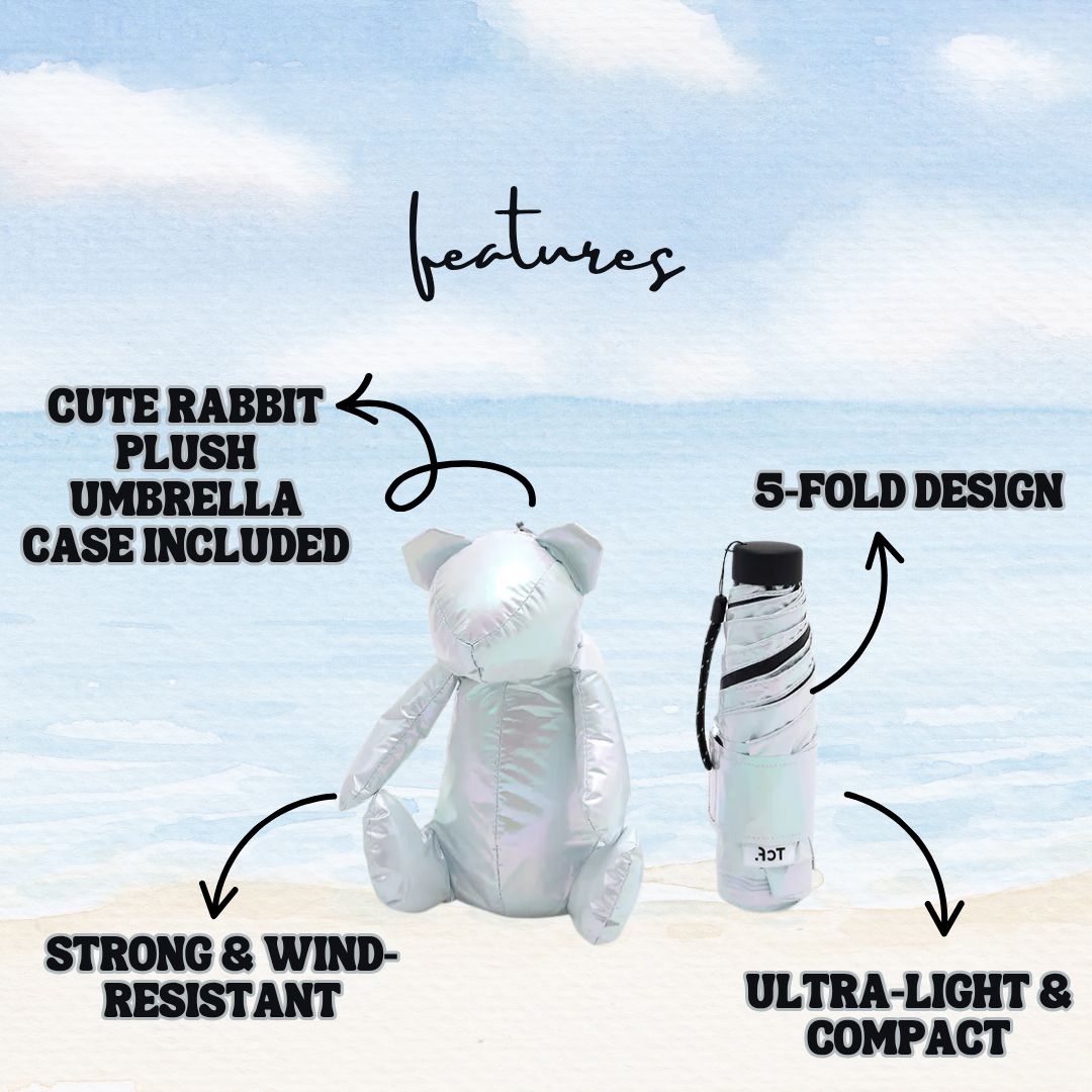 🧸 Plush Umbrella Case – Adorable rabbit design doubles as a bag charm.