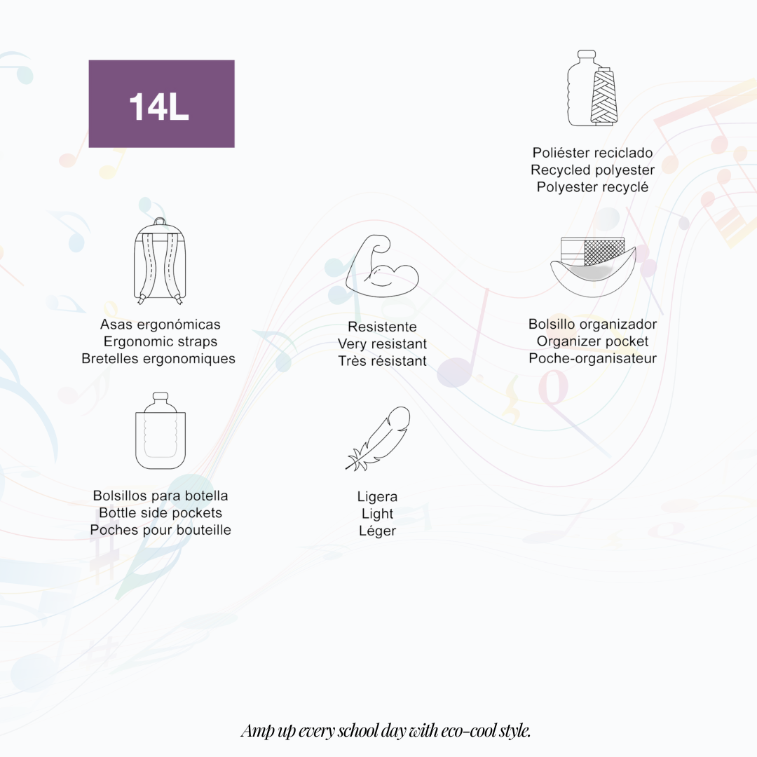 Made with recycled materials, this eco-friendly bag offers the perfect balance of durability and lightweight comfort. With padded straps and spacious storage, it’s built for daily school runs, enrichment classes or weekend outings. 🎶⚡